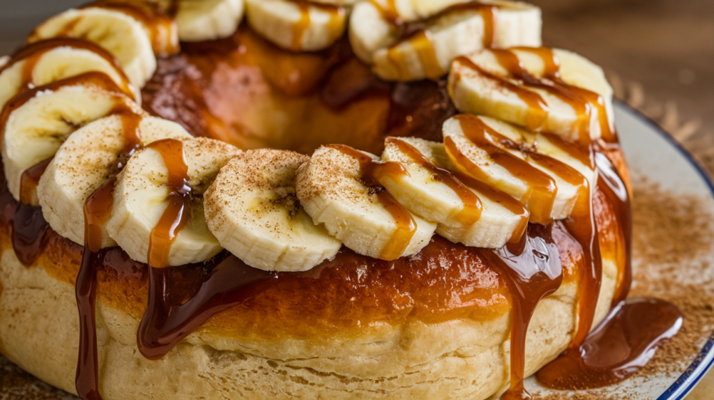 - O bolo de banana caramelizada combina bananas maduras com uma cobertura de caramelo irresistível.